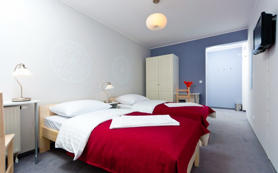 Pokój dwuosobowy z dwoma pojedynczymi łóżkami wyposażony w łazienkę, balkon, Tv oraz dostęp do internetu. Przytulny i cichy pokoik z balkonem i oknami od strony podwórza.